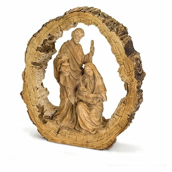 You can’t go wrong with this festive Holy Family Faux Wood Table Decor.
