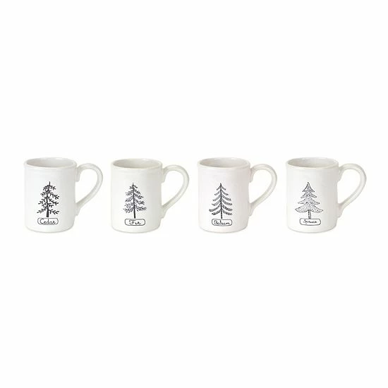 This Tree Decorative Mug Table Decor 4-piece Set adds joy to the holiday season.